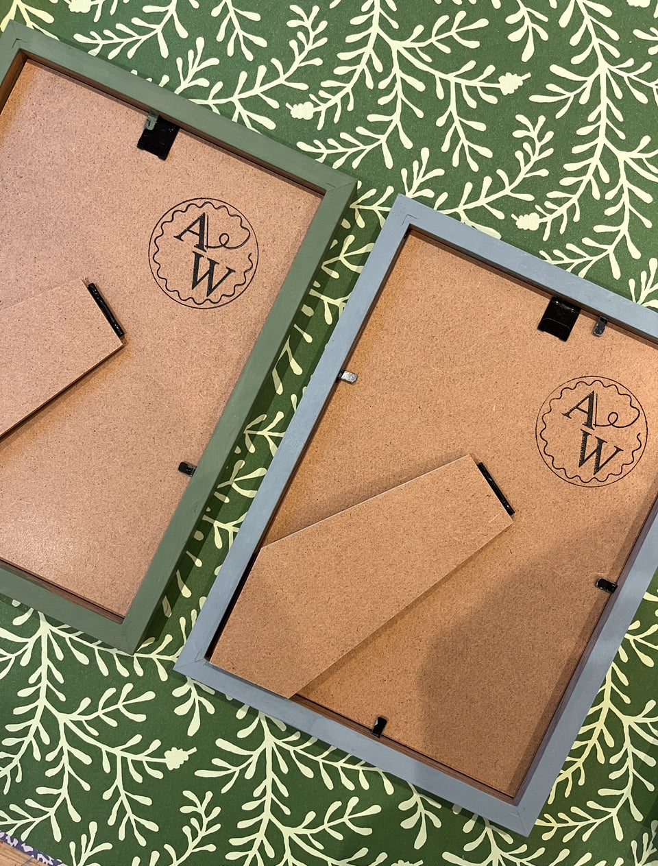 The perfect way to finish your prints. Choose either a beautiful natural bobbin frame or from a selection of muted paint colours, each bobbin frame is made from solid oak and is hand painted and finished with a protective matte lacquer. Available in A5, A4 and A3 (see sizing guide in pictures for more info).